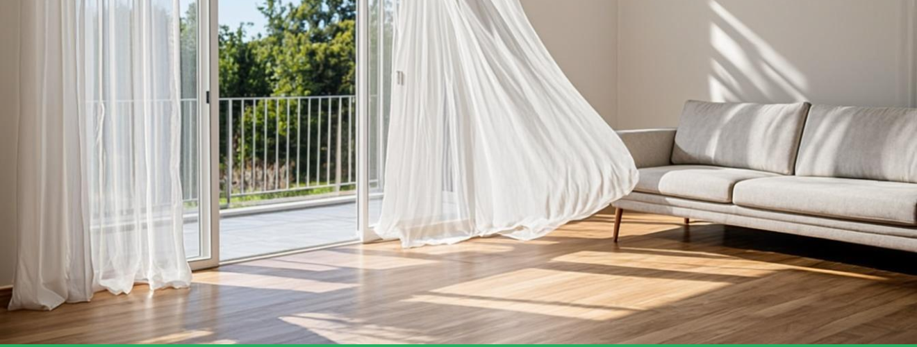 Shock ventilation — sometimes called « Stosslüften » in German-speaking countries where it is a well-established practice — is the technique of opening multiple windows across your home simultaneously for a short, intense burst. The key difference between this and normal ventilation is the cross-flow effect. By opening windows on opposite sides of your home, you create a powerful current of air that rapidly exchanges the humid indoor air with drier outdoor air.